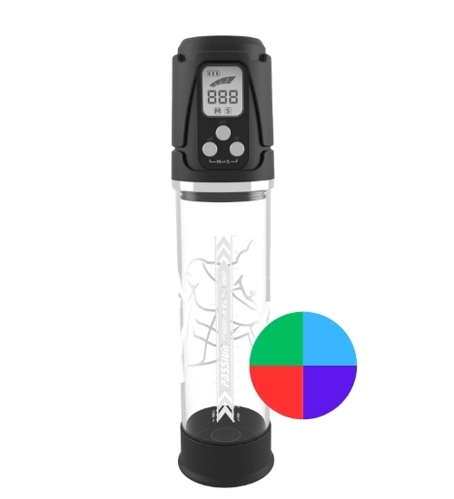 Wyjątkowym wyróżnikiem tej pompki jest efektowne podświetlenie LED zmieniające kolory w zależności od intensywności pracy. Do dyspozycji są barwy niebieska, fioletowa, zielona oraz czerwona, które tworzą dynamiczny i nowoczesny efekt wizualny. Przezroczysty cylinder z dekoracyjnym wzorem dodatkowo podkreśla klasę urządzenia. To połączenie technologii, estetyki i funkcjonalności, które czyni ten model idealnym wyborem dla wymagających użytkowników.