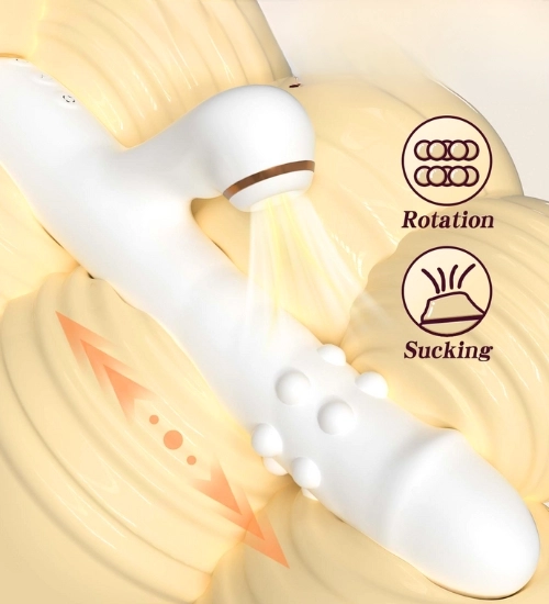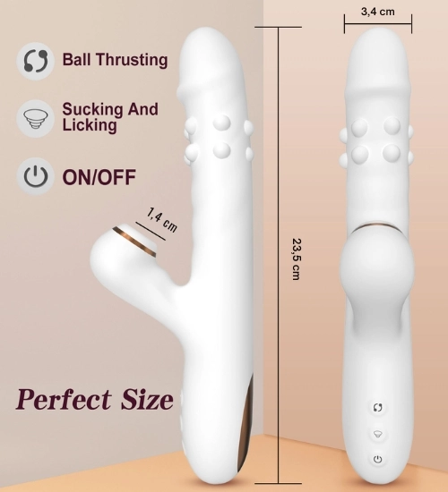 Trzy tryby rotacji łączą ruch posuwisty góra - dół z krążeniem wokół kuleczek, co przekłada się na głębsze i bardziej realistyczne doznania. Ten podwójny mechanizm pozwala precyzyjnie trafić w najbardziej wrażliwe miejsca i stopniowo budować napięcie. Jednocześnie języczek stymulujący działa w siedmiu prędkościach, imitując rytmiczne lizanie, które wzmaga przyjemność z każdą sekundą. Praca silnika (poniżej 50 dB) zapewnia dyskrecję, a wodoodporność IPX5 umożliwia bezpieczne użytkowanie z żelami poślizgowymi oraz bezpieczne czyszczenie przy pomocy wody z odrobiną delikatnego mydła.