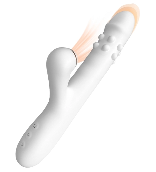Biały wibrator z funkcją rotacji i języczkiem to gadżet, który zaskakuje swoimi możliwościami. Został zaprojektowany tak, by łączyć nowoczesne technologie z wygodą i eleganckim wyglądem. Wykonany z miękkiego, przyjemnego w dotyku silikonu oraz trwałego ABS-u, wyróżnia się nie tylko designem ale też funkcjonalnością, która dba zarówno o punkt G jak i łechtaczkę.