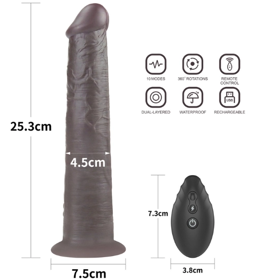 Ciemne dildo z bezprzewodowym pilotem to nowoczesny gadżet, który zachwyca realistycznym wyglądem i zaawansowaną technologią. Starannie odwzorowana główka oraz dwuwarstwowy trzon gwarantują intensywne i niezwykle naturalne doznania. Miękka, delikatna powierzchnia w połączeniu z mocnym, stabilnym wnętrzem wiernie oddaje wrażenia prawdziwej bliskości, wyróżniając ten model na tle innych tego typu gadżetów.