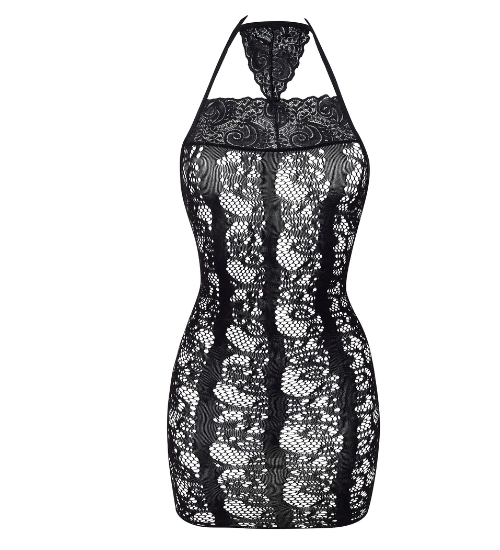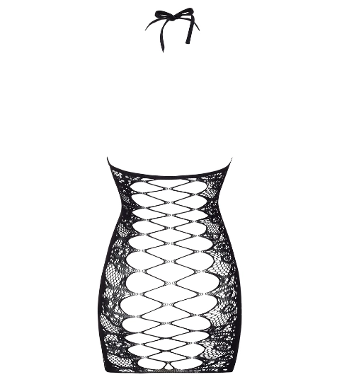 Czarna koronkowa sukienka z odważnym tyłem łączy w sobie elegancję z wyraźną nutą zmysłowości. Delikatna koronka oplata sylwetkę, tworząc efektowne prześwity i podkreślając jej naturalne kształty. Misterny, koronkowy deseń na przodzie nadaje całości lekkości, a dopracowane wykończenia dodają szyku. To model, który przyciąga wzrok formą i jednocześnie wyróżnia się wyrazistym charakterem.