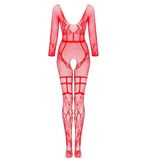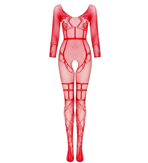 Czerwone bodystocking z długim rękawem zachwyca połączeniem elegancji i zmysłowości. Delikatna siateczka z kwiatowym wzorem podkreśla kobiecą sylwetkę, dodając jej lekkości i wdzięku. Intensywna czerwień przyciąga spojrzenia, symbolizując namiętność, miłość i pewność siebie, dzięki czemu ten model doskonale sprawdza się podczas intymnych, wyjątkowych chwil.