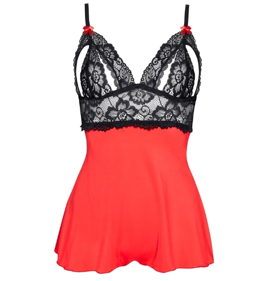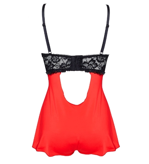 Zmysłowe połączenie czarnej koronki i czerwonego, gładkiego materiału nadaje tym body wyjątkowego charakteru. Starannie dobrane tkaniny podkreślają kobiecą sylwetkę i tworzą seksowną kompozycję, która przyciąga wzrok. Delikatna koronka z motywem kwiatowym pięknie eksponuje biust, a czerwone kokardki dodają całości uroczego akcentu.