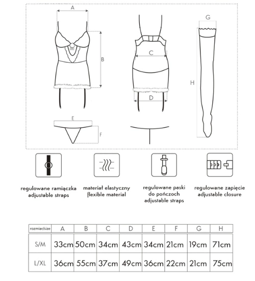 - w komplecie znajdują się: koszulka, stringi, pończochy, opaska oraz choker ze smyczą