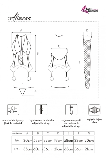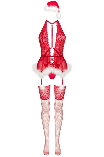W komplecie znajdziesz gorset, stringi, pończochy i czapkę Mikołaja - każdy element wykonany z delikatnego, przyjemnego w dotyku materiału, idealnie dopasowującego się do kobiecej sylwetki, podkreślając jednocześnie wszystkie jej atuty.