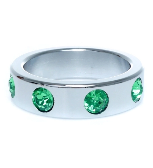 Metalowy pierścień z zielonymi diamentami wykonany ze stali nierdzewnej przyciąga uwagę nie tylko swoją formą ale również połyskiem zielonych diamentów. Osiem równomiernie rozmieszczonych ozdób dodaje mu luksusowego wyglądu, czyniąc go nie tylko gadżetem intymnym, ale także biżuterią. Dzięki metalicznemu wykończeniu oraz precyzyjnie wygładzonej powierzchni, pierścień prezentuje się nowocześnie i estetycznie.