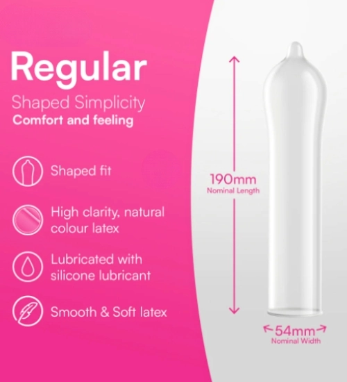 Prezerwatywy Pasante Regular są gładkie i przeźroczyste. Mają lekko zwężony kształt ze zbiorniczkiem na końcu, który ułatwia ich używanie. Dzięki temu zapewniają wygodne dopasowanie i poczucie bezpieczeństwa.