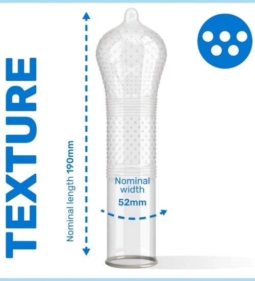 Dzięki długości nominalnej 190 mm i szerokości 52 mm prezerwatywy idealnie dopasowują się, zapewniając wygodę i pewność podczas stosunku. Pokryte są lubrykantem bez środka plemnikobójczego, co czyni je odpowiednimi także dla osób o wrażliwej skórze. Brak alkoholu w składzie oraz certyfikat CE potwierdzają wysoką jakość i bezpieczeństwo produktu.