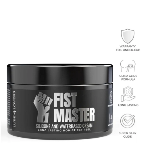 Fist Master to wysokiej klasy lubrykant analny w formie kremu, stworzony na bazie wody i silikonu, dedykowany najbardziej intensywnym i wymagającym praktykom. Gęsta, skoncentrowana formuła zapewnia długotrwały poślizg, skutecznie redukując tarcie i gwarantując pełen komfort nawet przy głębokiej penetracji. Po aplikacji skóra pozostaje odpowiednio nawilżona, jedwabiście gładka i miękka w dotyku, bez nieprzyjemnego uczucia lepkości.