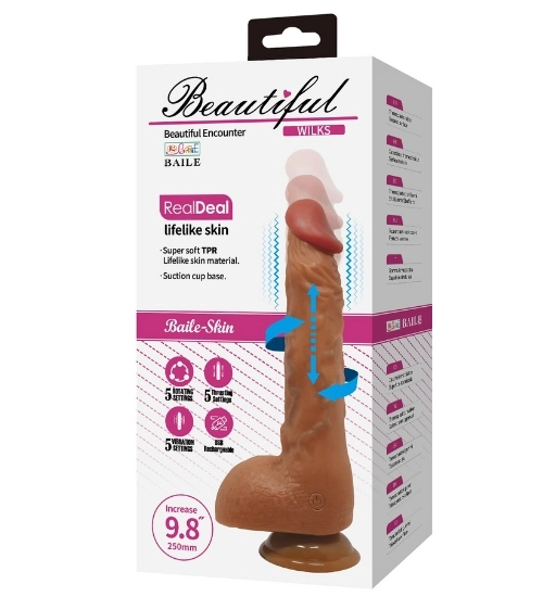 Realistyczny wibrator rotacyjny z przyssawką to gadżet o wyglądzie i strukturze przypominającej prawdziwe ciało. Wykonany z miękkiego, elastycznego TPR o fakturze skóry, wyróżnia się szczegółowym odwzorowaniem, od wyraźnie zaznaczonej główki przez naturalne żyłkowanie aż po realistyczne jądra. Mocna przyssawka pozwala na stabilne przymocowanie go do gładkich powierzchni, umożliwiając swobodną, bezdotykową zabawę w różnych pozycjach.