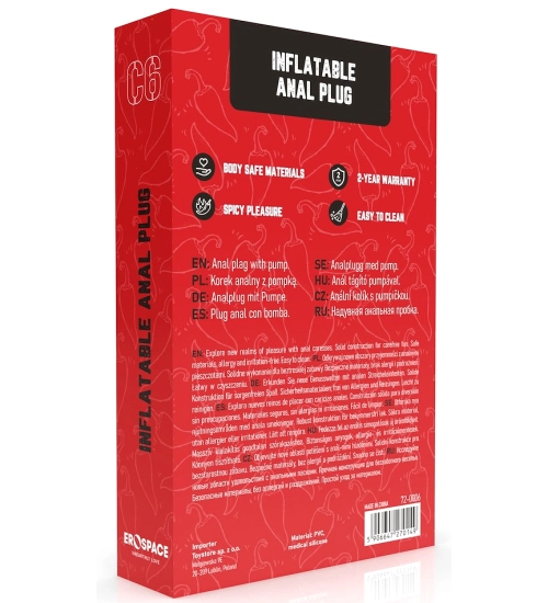 Wykonany z bezpiecznego dla skóry medycznego silikonu oraz PVC, zapewnia komfort oraz higienę użytkowania. Stworzony z myślą o odkrywaniu nowych niesamowitych doznań wynikających ze stopniowego rozpychania anusa podczas pompowania. Produkt wyposażony jest w specjalny zawór umożliwiający spuszczanie powietrza- umożliwia on pełną kontrolę nad intensywnością stymulacji.
