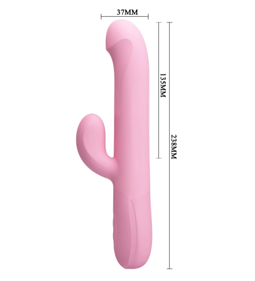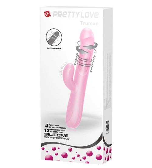 Główny człon obraca się wokół własnej osi w 4 trybach. Wirujący mechanizm wewnątrz sprawia, że na powierzchni pojawiają się wybrzuszenia, które będą dodatkowo stymulować i pieścić cię od środka. Wypustka łechtaczkowa wibruje w 12 trybach. Łącząc te dwa rodzaje stymulacji osiągniesz szczyt niezwykle szybko.