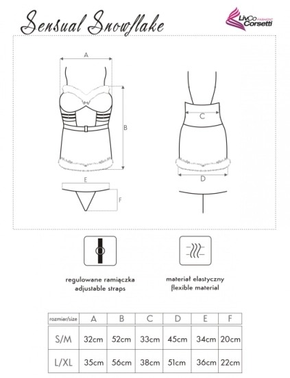Ta urokliwa sukienka "Śnieżynka" nie tylko rozpali atmosferę świąteczną w waszej sypialni, ale także zachwyci solidnym wykonaniem. Materiał, z którego została stworzona, jest niezwykle delikatny w dotyku, co sprawia, że sukienka idealnie dopasowuje się do kobiecego ciała, zapewniając nie tylko piękny wygląd, ale również wyjątkowy komfort noszenia.