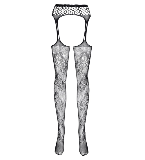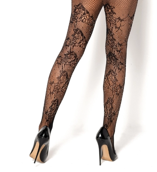 Siateczkowe pończochy z cyrkoniami zachwycają połączeniem siateczkowej struktury i eleganckiej koronki. Delikatne wzory kwiatów podkreślają ich zmysłowy charakter, a połączony z nimi pas tworzy spójną i efektowną całość. To model, który wyróżnia się nowoczesnym stylem oraz starannym wykonaniem, dzięki czemu prezentuje się wyjątkowo kobieco w każdej stylizacji.