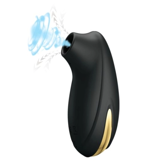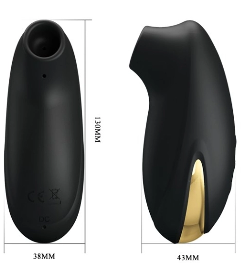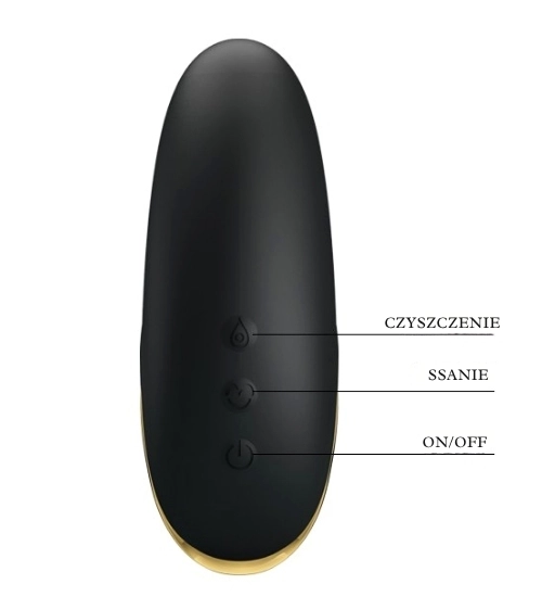 Ssący masażer łechtaczki w eleganckiej czarno-złotej odsłonie łączy w sobie styl i nowoczesną tecvhnologię. Jego opływowy kształt idealnie dopasowuje się do dłoni, a miękka końcówka precyzyjnie obejmuje łechtaczkę, dostarczając intensywnych doznań bez bezpośredniego kontaktu. Delikatne zasysanie naśladuje naturalne ruchy, co pozwala odkryć zupełnie nowy wymiar przyjemności.