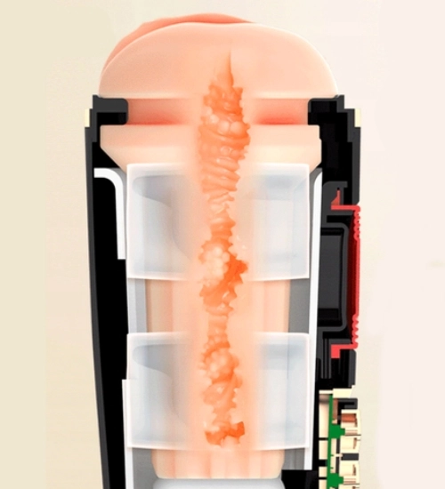 Wnętrze masturbatora wykonane zostało z wysokiej jakości miękkiej cyberskóry. Tworzywo to podobnie jak prawdziwa ludzka skóra szybko się nagrzewa dostosowując do temperatury ciała. Gwarantuje to doznania na możliwie najwyższym poziomie.