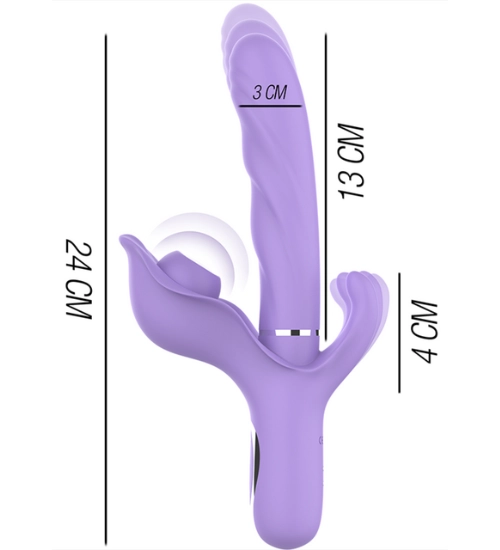 Wibrator potrójnej stymulacji to połączenie luksusu, innowacyjnych technologii i precyzyjnej ergonomii, które gwarantują intensywne doznania. Jego elegancka, fioletowa konstrukcja została zaprojektowana z myślą o maksymalnym komforcie użytkowania, a trzy niezależne silniki odpowiadają za różnorodną i skuteczną stymulację. Wysokiej jakości materiały oraz wodoodporna obudowa pozwalają na bezpieczne użytkowanie zarówno w sypialni, jak i w kąpieli, dając pełną swobodę odkrywania przyjemności.