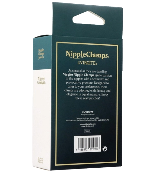 Stymulujące zaciski pochodzą z wyjątkowej kolekcji gadżetów BDSM marki Virgite. Złote klipsy na sutki doskonale sprawdzą się w sypialni wszystkich miłośniczek stymulacji sutków. Prezentowane zaciski wspaniale rozpalają zmysły i sprawiają, że wspólne chwile stają się jeszcze bardziej emocjonujące! Wykonane z najwyższej jakości metalu wolnego od niklu są bezpieczne dla zdrowia. Prosta konstrukcja regulacji zacisku sprawi, że sama możesz dobrać siłę z jaką zacisk ma oddziaływać na Twoje piersi. Biżuteria nie powoduje otarć delikatnej skóry sutków - końcówki zacisków pokryte są miękkim materiałem.