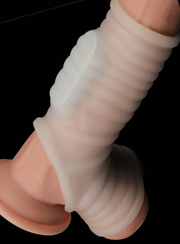 Jeśli odczuwasz, że twój penis jest zbyt cienki i twoja erekcja nie jest wystarczająco silna, warto rozważyć użycie tej nakładki. Dzięki niej zyskasz pogrubiony penis i wzmocnioną erekcję. Elastyczny materiał silikonowy sprawia, że nakładka jest łatwa w aplikacji na penisa i jądra, otulając go komfortowo.