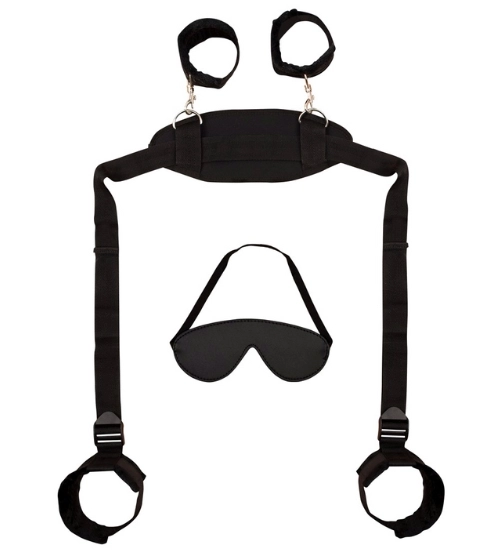 Całość uzupełnia maska na oczy, która wspiera budowanie napięcia i pozwala na skupienie się na pozostałych wrażeniach. Zestaw oferuje solidne wykonanie oraz wiele możliwości konfiguracji.
