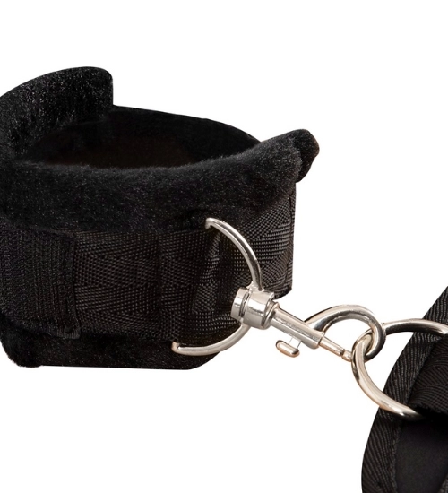 • kajdanki są bezpieczne i komfortowe w użyciu (pokryte miękkim pluszem i zapinane na rzepy)