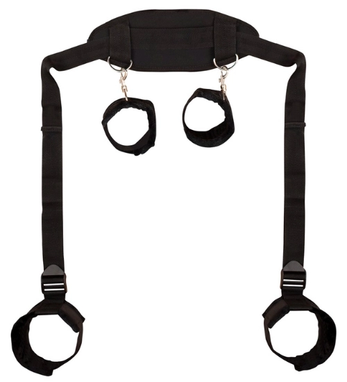 W skład zestawu wchodzą miękkie opaski na nadgarstki i kostki oraz 188-centymetrowy pas z możliwością regulacji. Elementy można ze sobą łączyć, tworząc stabilne rozwiązanie dopasowane do potrzeb. Opaski zostały wyścielone pluszem i zapinane na rzepy, co zapewnia komfort i bezpieczeństwo użytkowania. Dodatkowe karabińczyki pozwalają szybko odpiąć poszczególne części, a regulowane paski umożliwiają pełne dopasowanie.