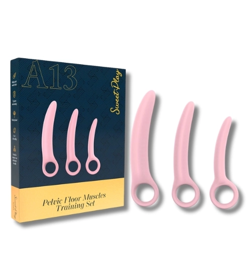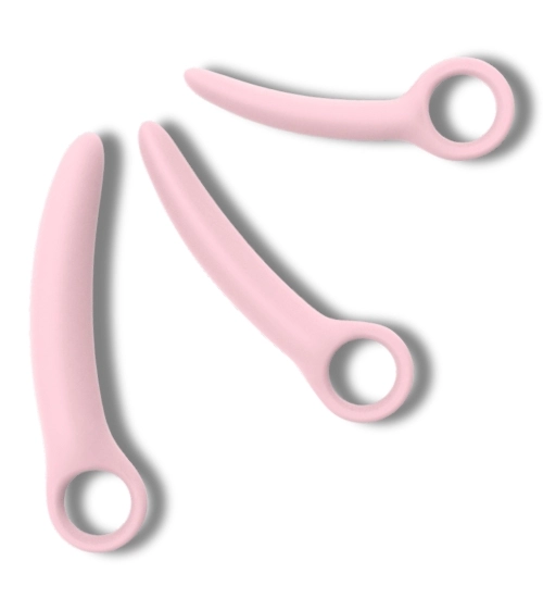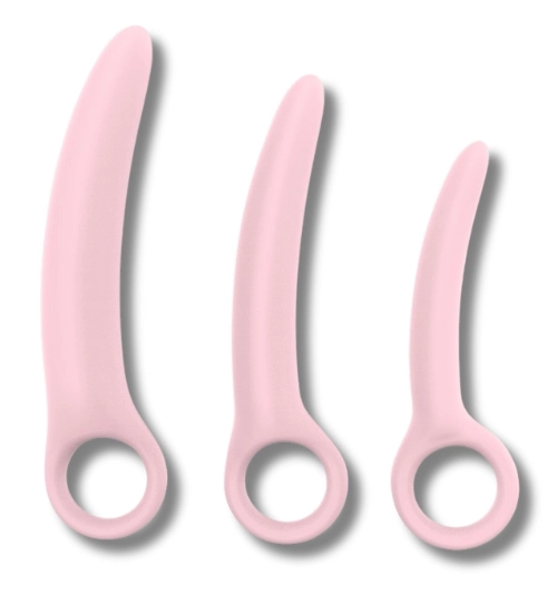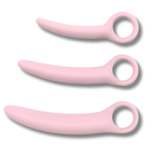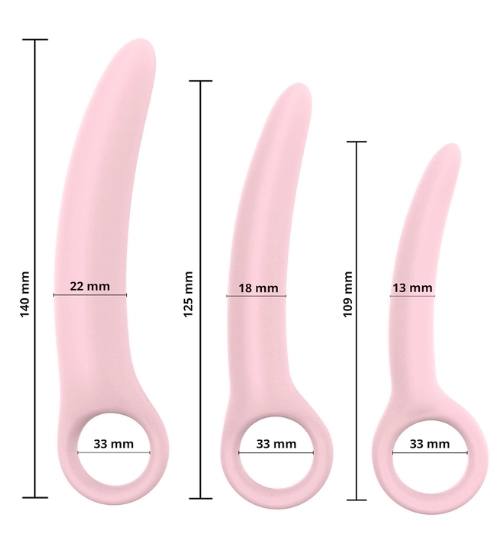 W komplecie znajdują się trzy dilatory o zróżnicowanych rozmiarach, co pozwala dopasować terapię do indywidualnych potrzeb użytkowniczki. Dzięki ergonomicznym uchwytom w formie pętli każdy element jest wygodny w użyciu i łatwy do kontrolowania podczas ćwiczeń. Regularne stosowanie może poprawić elastyczność tkanek, zredukować dyskomfort i wspomóc powrót do codziennego funkcjonowania. Zestaw polecany jest szczególnie osobom będącym w trakcie rehabilitacji uroginekologicznej oraz wszystkim, którzy świadomie dbają o zdrowie pochwy.