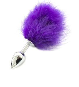 Srebrny plug analny z fioletowym pomponem