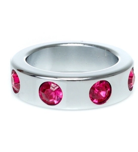 Metalowy pierścień z czerwonymi diamentami - mały