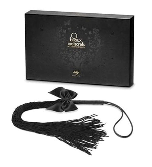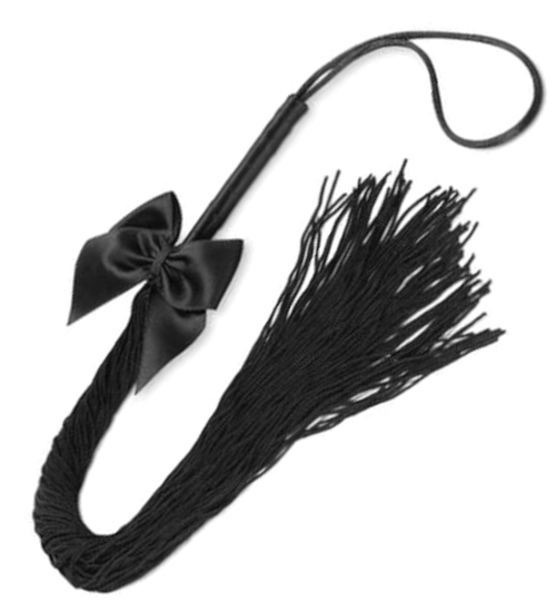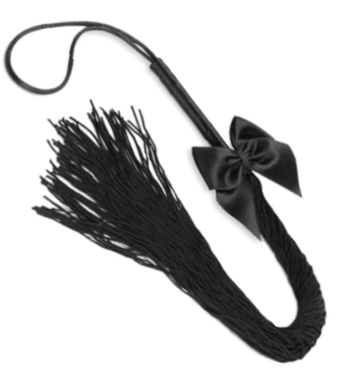 Miękki pejcz hiszpańskiej marki wykonany z długich i mięciutkich frędzli. Uchwyt ozdobiony subtelną, aksamitną kokardką.