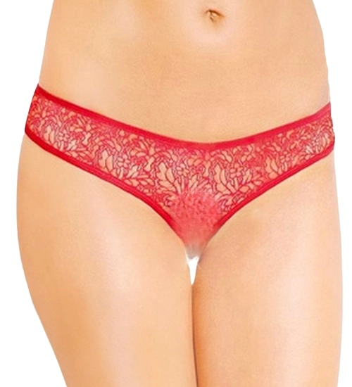Piękne majteczki w namiętnym kolorze czerwieni. Wykonane zostały z delikatnego materiału przyjemnego w dotyku. Ozdobione zmysłowym, kwiatowym wzorem.