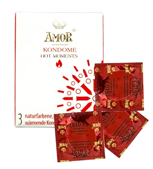 Gorące pocałunki... Iskry namiętności... Żar spoconych ciał... Czy może być jeszcze bardziej gorąco między wami? TAK! Prezerwatywy Amor z serii Hot Moments zostały pokryte specjalnym żelem rozgrzewającym, który potęguje doznania i przyjemność. Delikatne uczucie ciepła doprowadzi was do prawdziwej euforii i jeszcze intensywniejszych przeżyć.