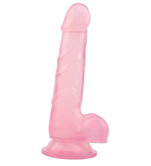 Realistyczny penis wykonany z materiału bezpiecznego dla ciała, pozbawionego ftalanów. Żelowe tworzywo jest bardzo miłe i sprężyste w dotyku. Piękny różowy kolor sprawia, że produkt ten jest wyjątkowy. Powierzchnia członka posiada dużo żył a zarysowany żołądź dopełnia naturalnego efektu. U nasady dildo znajdują się średnich rozmiarów jądra oraz praktyczna przyssawka, która umożliwia zabawę bez użycia rąk. Rozmiary dildo są przyjazne dla początkujących użytkowników.