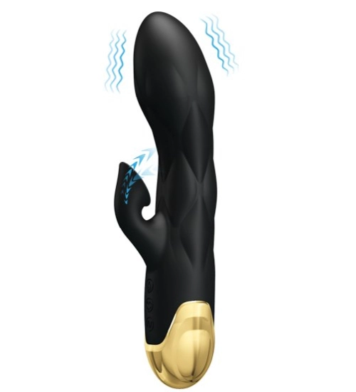 Urządzenie posiada bardzo mocne silniczki odznaczające się cichą pracą. Doceń jego dyskrecję. Funkcja zasysania łechtaczki czyni króliczka pożądanym przez kobiety lubiące ten rodzaj pieszczot. Mechanizm jest samoczyszczący, wystarczy, że włożysz wibrator do wody i naciśniesz odpowiedni przycisk. Panel sterowania pozwala na łatwe kierowanie gadżetem. Zabawka posiada 7 funkcji zasysania oraz 7 funkcji wibracji. Nowoczesny wygląd oraz piękne połączenie czerni ze złotem urzeknie cię od pierwszego wejrzenia. Sprzęt jest wodoodporny, doskonały do zabaw w wannie i pod prysznicem.