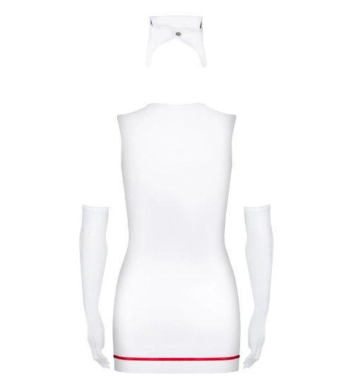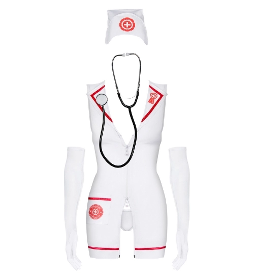 Bardzo seksowny kostium do łóżkowych przebieranek. Pięknie podkreśla sylwetkę opinając piersi i pośladki. Sukienka-fartuszek posiada obustronne suwaki, można kontrolować poziom odkrycia ciała. Kostium ten to propozycja dla par lubiących zabawę w sypialni. Będzie idealnym prezentem dla obojga partnerów.