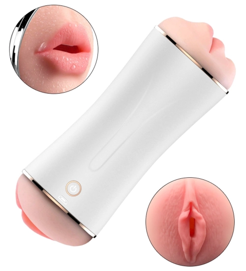 Elegancka zabawka dla mężczyzn lubiących różnorodne doznania. Posiada waginę oraz usta umieszczone po obu stronach gadżetu. Wkłady zostały wykonane z miękkiej cyberskóry, która doskonale imituje ludzkie ciało. Dostarczą ci niezapomnianej przyjemności. Wewnątrz masturbatora umieszczono tunele z perforacją. Umożliwia to wyjątkową stymulację. Materiał jest jedwabisty w dotyku i łatwo zyskuje temperaturę ciała. Wagina i usta są pięknie wykrojone, w naturalnym cielistym kolorze.