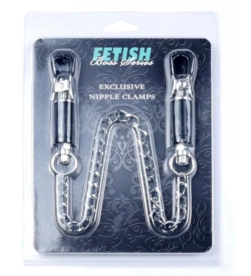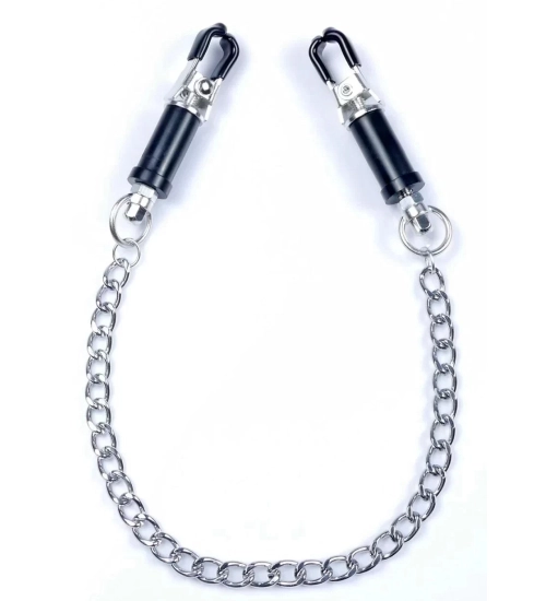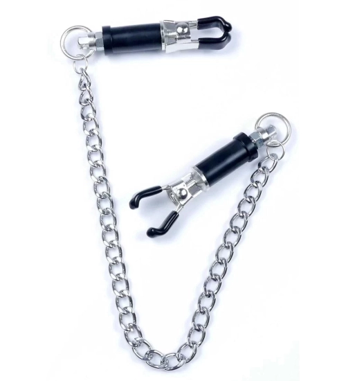 Zaciski na sutki połączone zostały eleganckim łańcuszkiem, który zgrabnie łączy oba sutki. Wyobrażasz sobie, jak uderza o ciało twojej kobiety, gdy rytmicznie falują jej piersi? Mało tego, połączenie sutków łańcuszkiem to poza walorami estetycznymi także dodatkowe doznania dla osoby stymulowanej – przyjemność rozchodzi się po ciele przy każdym, nawet najmniejszym ruchu.