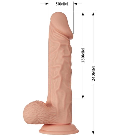 Dzięki mocnej przyssawce możesz przykleić je do dowolnej gładkiej powierzchni i cieszyć się nim pod prysznicem, bez konieczności użycia rąk. Jego wymiary odpowiadają europejskim standardom dla męskich penisów i może być używane również przez początkujące kobiety. Na dolnej części dildo znajdują się nabrzmiałe jądra, które dodają mu jeszcze większej realistyczności.