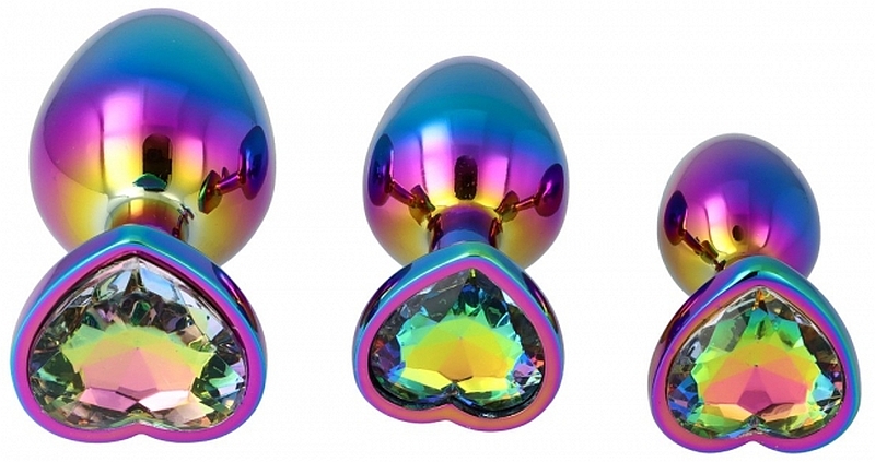 Ten zestaw trzech korków w odcieniach tęczy stanowi wspaniałe uzupełnienie dla intymnych igraszek w łóżku. Ich piękne wykonanie doskonale prezentuje się w otworze, a na końcu każdego zakończone są kryształkiem w kształcie serduszka, co nadaje im jeszcze większej wyjątkowości.